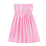 - Strapless with elastic band at bust and waist, pull on closure.