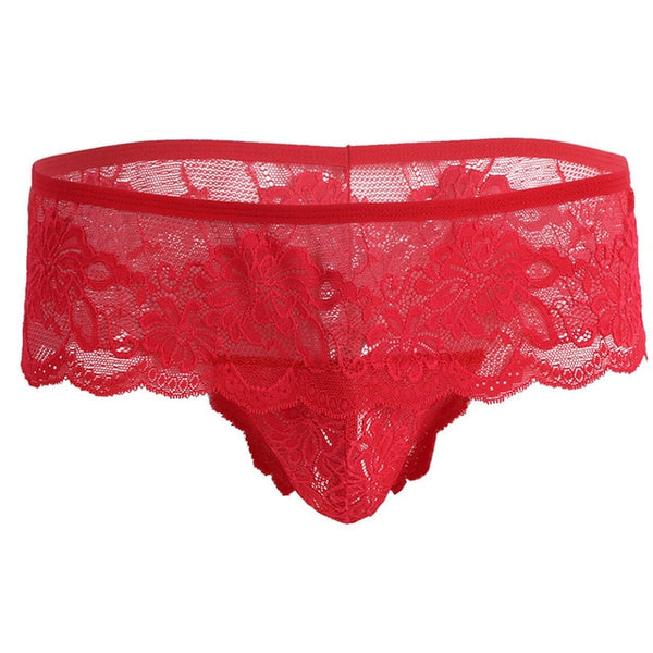 - With lacework pattern at waist and bulge pouch.
